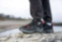 Skoens overdel er laget av en kombinasjon av tekstil og robust 1,4-1,6 mm splittlær, som sikrer god slitestyrke. Den lave ankeldesignen gir større bevegelsesfrihet, samtidig som den medium flexen gir god støtte i terrenget, sammenliknet med for eksempel joggesko som har en lav flex.